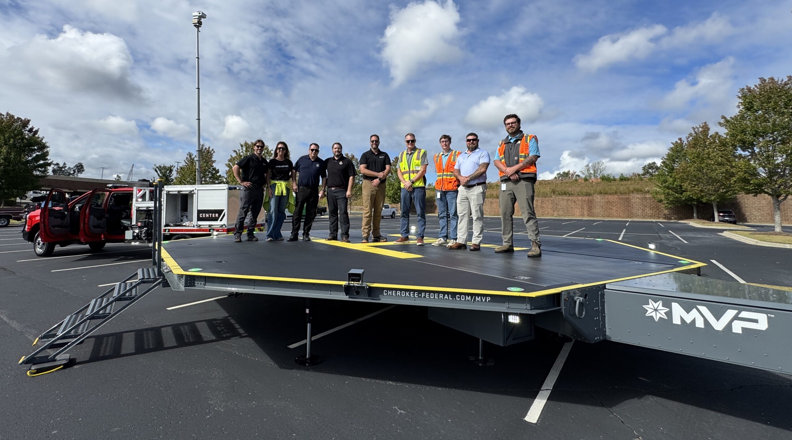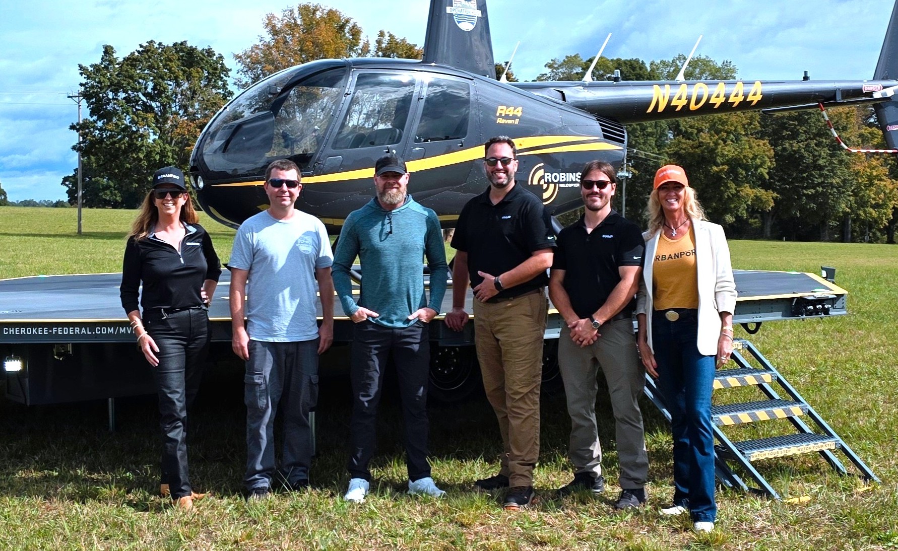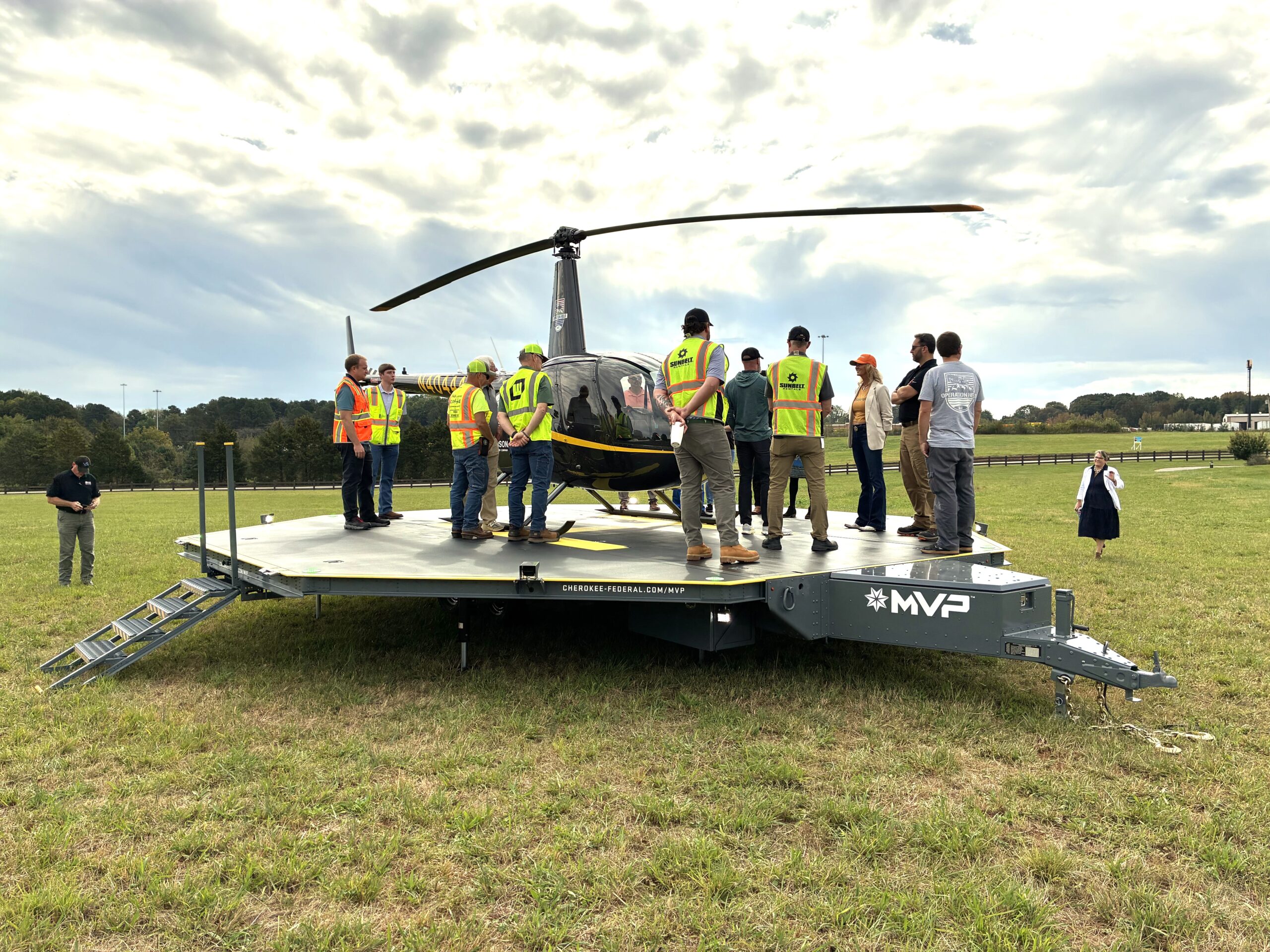 URBANPORT, in collaboration with Cherokee Federal and Sunbelt Rentals, successfully executed North Carolina’s first helicopter landing on Cherokee Federal’s new Mobile Vertipad Platform™ (MVP™) product. The historic landing, part of non-profit Operation Helo’s humanitarian readiness drill, took place on October 8, on the grassy fields of G.L. Wilson Building Company, just 48 miles north of Charlotte Douglas International Airport in Statesville, NC. This marks the product’s first-ever simulated deployment outside of Oklahoma which lays the groundwork for the future of disaster logistics, emergency mobility, and humanitarian air operations across the U.S.